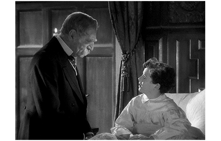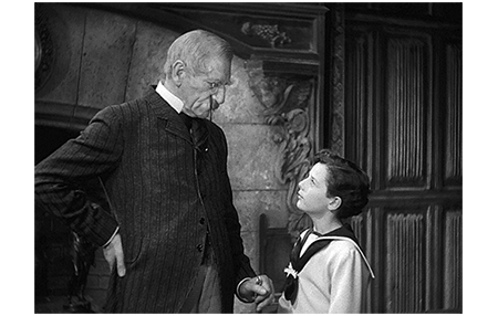 原作では、あばずれ女に会う前になっているが、映画では、コート・ロッジから帰った後、伯爵はセドリックの寝室に行く。「悪い知らせを お聞きになったんでしょう?」。「ああ、最悪だ」。「僕はもうフォントルロイ卿じゃないのね?」。「あの女めにやられた」。「なら、その別な子が… お祖父様の… 子供になるの? 僕の代わりに?」(1枚目の写真)。伯爵は強く否定する。「違う!」。「でも、その子がフォントルロイ卿なら、お城に住むんでしょ?」。「わしが生きとる限り、あの下等なガキは城に入れさせん!」。「なら、僕、伯爵にならなくても、まだお祖父様の子供なの? 前と同じように?」。「そうだ。わしが生きておる限り、お前はわしの子だ」。「だったら、伯爵なんかどうでもいいの。だって、僕、伯爵になる子が、お祖父様の子になると思ってたから。もう 子供じゃないのかと思っちゃって」(2枚目の写真)。「奴らには、お前のものは何一つ取り上げさせん。何が起きようと〔Come what may〕、わしがお前にやれるものは、全部やる」。伯爵のセドリックに対する愛情が良く分かる。