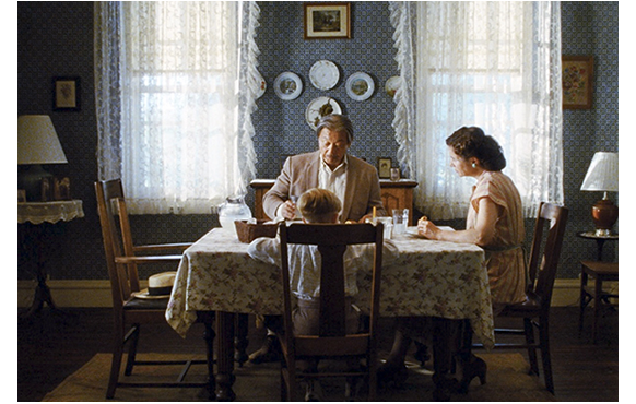映画の最初に、主人公のペッパーが、父のジェームスと如何に仲が良かったかが語られる。お互いを「相棒」と呼び、父が「やれると信じるか?」と問い、ペッパーが「うん、やれると信じてる」と答える。父は、どんなことにも挑戦する心構えを付けさせたのだ。それというのも、ペッパーが生まれた時から小柄で、その後も身長がなかなか伸びなかったから。その、何ものにも代えがたい父が、一家に一人の徴兵義務により戦争に行くことになった。ペッパーの兄のロンドンが、偏平足のため兵役失格となったからだ。それが分かった日の夕食。漏れ聴いた話を確かめようと、「ロンドンは戦争に行かない。だよね?」「それって… パパが代わりに?」と恐る恐る訊くペッパー。「そうだ」と父。「あっという間に 戻って来るわ」と母。それでも、涙を浮かべ「なぜ 一緒にいられないの?」と尋ねるペッパー。「相棒、使命なんだ」。「お願い行かないで」。