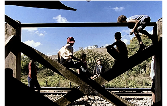 ゼゼは、弟のルイスを竹藪の「動物園」に連れて来る。上から見下したカメラ・アングルが面白い(1枚目の写真)。鳥だけでなく、空想上のライオンもいる。「ライオンは百獣の王だ。みんなの面倒を見てくれる」。次に2人が向かったのは「飛行機」。地面に2つ穴を掘り(操縦席と、後方のルイスの席)、バナナの葉を翼に見立てただけのシンプルなものだ。ゼゼはボトルのキャップで作った操縦席のつまみをまわすと、両手でプロペラに見立てた自転車の車輪を回し(2枚目の写真)、いざ離陸。ゼゼの空想癖を示す良い例だ。今日が引っ越しなので、飛行機ゴッコは今日が最後。ゼゼは、家に戻る途中で父に捕まり、「二度と よそ様の柵に放火するんじゃないぞ。ずっと見張ってるからな」と厳重注意される。そして、荷物ごと荷馬車に乗って引っ越し先に向かう〔1990年代で荷馬車というのも変な話だが、ブラジルの事情は分からない〕。ゼゼは兄のトトーカと一緒に座る。兄:「今、何 考えてるんだ?」。ゼゼ:「リオに行って、伯父さんに会いたい。マンガラチバ鉄道みたいに」〔リオと、西80キロにあるマンガラチバを結ぶ列車〕。「良くなって戻ってくるさ」。「エドムンド伯父さんは良くならない。死ぬんだ」。「リオじゃ、毎日誰かが死んでる」。「ここじゃ、死なないの?」。「ああ」。