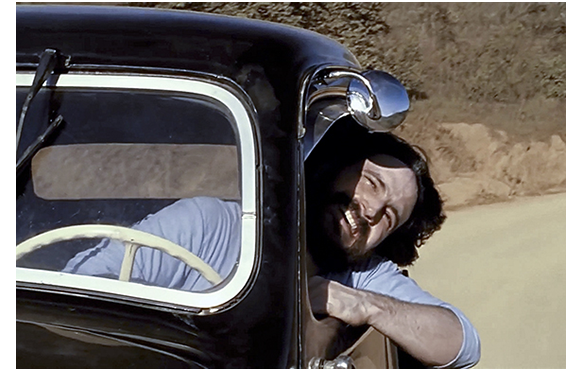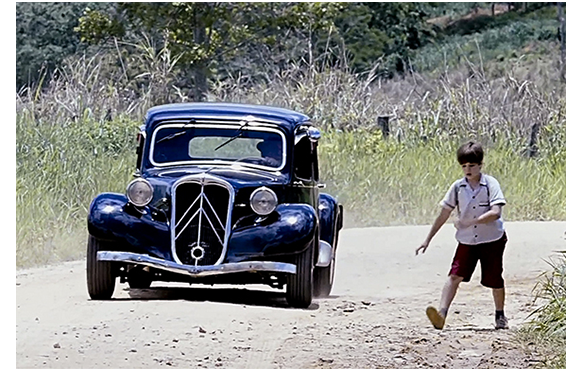 その時、マヌエル・ヴァラダリスのシトロエンがやってくるのが見える。子供たちは誰も本名では呼ばない。ポルトガル人(Português)なので、ポルトゥーガ(Portuga)と呼んでいる。その時、マンガラチバ鉄道のディーゼル機関車もやってきた。踏み切りで両者はクロスすることになる。シトロエンは、この時点でも40年以上前のヴィンテージカーなので、それほど高速が出るとは思えないが、ポルトゥーガは一向にスピードを落とす気配はなく、列車が通過する前に踏み切りを渡る気だ。しかし、道路は未舗装のガタガタ道で、あちこちに水溜りもあり、最悪のコンディション。思わず、もうダメだという顔をするゼゼ(1枚目の写真)。しかし、シトロエンはぎりぎり数メートルの差で、衝突することなく踏み切りを渡り終える(2枚目の写真)。原作にはないが、このポルトゥーガの一種の冒険心が、映画の中で大きな意味を持っている。「すごいや。ポルトゥーガって、男の中の男だな。いつか、あの車のリヤバンパーに乗ってやるぞ」。