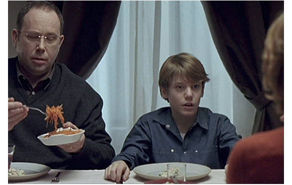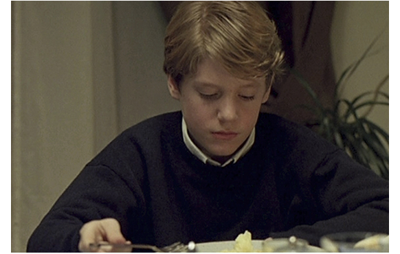 その日の夕食。ジュリアンは、フォークでつつくだけで食べない。「お前のために作ったのよ」「嫌いになったの?」「パパとシュザンヌ(姉)と同じだわ」「がっかりね」「チョコレート菓子なら食べるくせに」「お前が分からない」。これでは、いくらなんでもくどい。姉が、「お腹が空いてないだけじゃない?」と助け舟を出しても、「お前には訊いてない」の一言。「ジュリアン、お願いだから食べてちょうだい」の言葉に、ジュリアンが一口食べて吐き出すと、「何て子なの!」と怒る。その後、玄関でテニスに出かける父に、ジュリアンは「一緒に 行けない?」と頼む。自分勝手な父は、「一人で プレーしたい」と断る。相談もできないジュリアン。