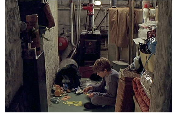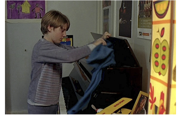 母は、ジュリアンの部屋に置いてあったすべての私物を捨ててしまった。ぬいぐるみまで。ピアノも撤去された。何一つなくなった部屋の片隅でうずくまるジュリアン。精神的な崩壊の直前だ。次の日、帰宅し、階段に座って考え込み、ピアノを弾く感覚を思い出そうとするかのように指を動かす。追い詰められたジュリアンの悲しい動作だ。