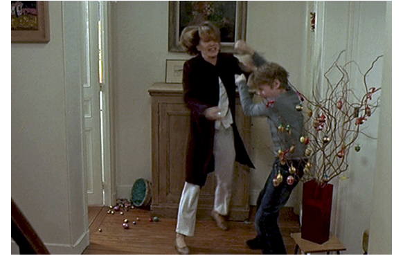 ジュリアンは、一念発起、母に批判された青いシャツを着、家をこっそり抜け出し、自転車でパーティに向かう。パーティではアリスといいムードだったが、そこに、「ママが来るぞ! ここにいるのがバレた!」と友達が駆け込む。慌てて自転車に飛び乗るジュリアン。しかし、途中で見つかり、母に自転車から引きずり降ろされ、自転車はその場に放置したまま、家に連れ戻される。家に帰ったジュリアンは、玄関で母に「なぜ、やったの? あんなことを!?」とひっぱたかれ、殴られ、床に叩きつけられる。ここまでくると小児虐待だ。