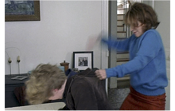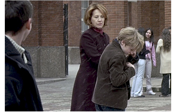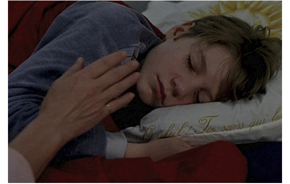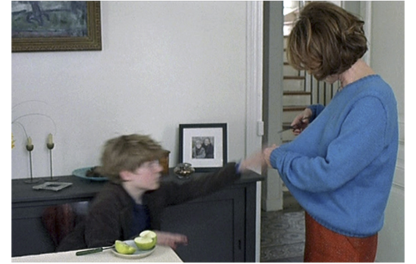 ジュリアンの祖母が危篤になっても、何もせず、ジュリアンにも行かせない母。しかし、夜、ジュリアンの寝室に入ってきて、愛おしげに顔をなでる。愛憎の二重人格が怖い。そして、学校の玄関前で、ジュリアンが友達と話していると、突然母がつかつかと寄って来る。ジュリアンが友達から離れて前まで行くと、「学校から家に直行しろと、言ったはず」と言い、思い切り頬を張り飛ばす。女子生徒も見ている前で。