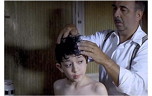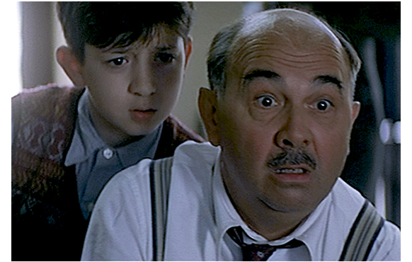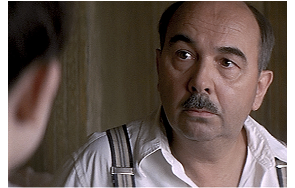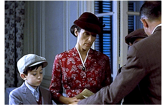 1942年7月15日朝。バーンシュタイン医師の元に1人の仲介人が現れ、旅行許可証と、4人分の身分証、洗礼証明書を渡す。2人の兄弟に、父は「今日から お前たちはバーンシュタインじゃない。ジェラールとポール・ルヴィエだ」と言う(1枚目の写真)。「どうして?」とシモンは不満げだ。父は、「もう 話したろ」と言うが、シモンには危機的状況が全く分かっていない。一家は、仲介人の用意した車に向かう。一方、バティニョールは、朝、地下の食料貯蔵庫に降りて行き、ハムやソーセージが盗難に遭ったことに気付き、大騒ぎする。かねてユダヤ人一家に目をつけていた対独協力者の娘婿候補は、一家が逃げ出そうとしているのに気付き、医師の子供が盗んだに違いないとバティニョールに示唆する。シモンのバイオリンを部屋に取りに戻った父の前に、バティニョールが現われ、一刻も無駄にできない緊急時にもかかわらず、長々と説明を始め、「昨夜、ハムを盗まれた」と苦情を言う。その間に、対独協力者は警察に電話をかけ、逃亡阻止の内通をする。汚らわしい人間だ。バティニョールが邪魔しているせいで、ちっとも来ない父。心配したシモンが、「パパ、何してるの?」と呼びに来る。「すぐ済むから、車で待ってなさい」(2枚目の写真)。そうこうしている間に、警察の車が到着してしまう。仲介人はさっと逃げ出し、対独協力者が飛び出て来て警官に指示する。3階にいた医師は、警察の声を聞き、バティニョールを睨み付けると、ルノワールの小さな絵をルイ15世時代の棚に隠す。一家の入れられた護送車は、バティニョールの目の前を通って出発する。車内からバティニョールを睨みつけるシモン(3枚目の写真)。一生恨んでやるという顔つきだ。バティニョールは、自分が何をやってしまったか、少しは気付いているが、それがどんなにひどいことなのかという認識はまだない。