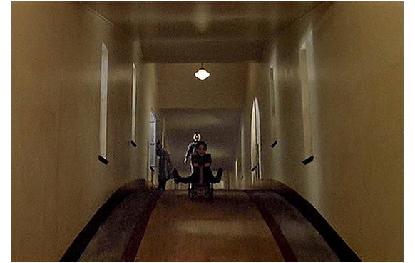 病気で臥せっている母が、夜、叫び声を上げる。吹雪で道に迷う悪夢を見たからだ。逃避行に移ってからの雪の山野での行程の予知夢なのか? その声で飛び起きた子供達。クラレンスがこっそり覗く(写真)。父が「今すぐベッドに戻りなさい。全員だ」と命令する。