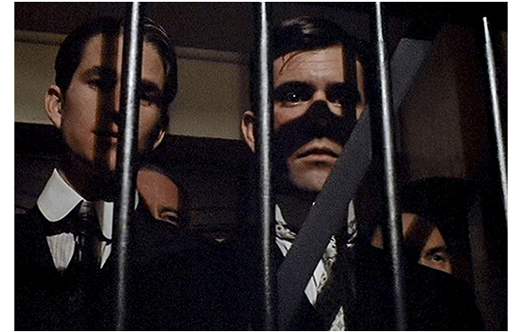 ビドル兄弟の死刑執行が明日に迫った日、母が、子供たち全員を家から追い出す。「さあさあ急いで。エルシー叔母のトコは楽しいわよ。ジニーと遊べるし。ママは、数日でそっちに行くから」。そして階段の途中で、「クラレンス、帽子をちゃんと被って。さよならのキスして」と言う(1枚目の写真)。この時点で、既に母はビドル兄弟の兄を愛していて、一緒に脱出するつもりでいるので、この「さよなら」は、永遠の別れを意味している。そして、馬車に乗り込んだ4人の子供。クラレンスの寂しそうな表情が、これから起きることを象徴しているように見える(2枚目の写真)。