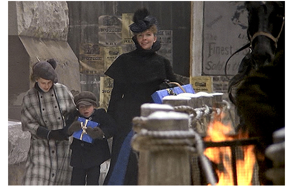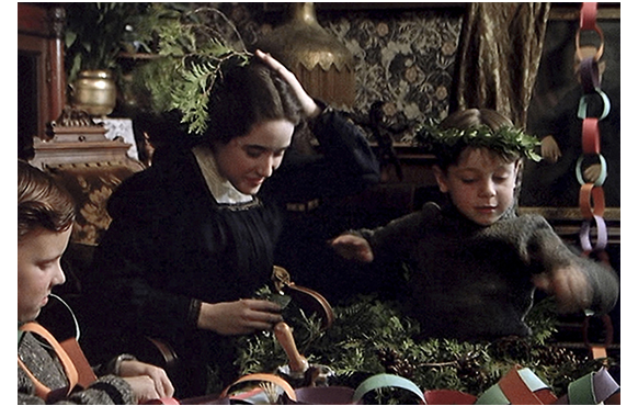 長女と2人の兄弟でクリスマスの準備をしているシーン。クラレンスが樅の小枝を姉の髪に載せる悪戯をしている(写真)。