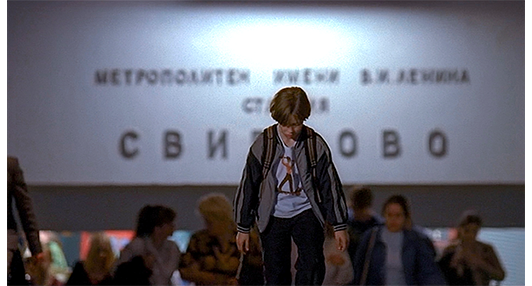 駅構内の階段を上がるイゴール(1枚目の写真、背景には駅名「СВИБЛОВО」が見える)。その間も、「おいで」の声は続く。地下鉄の出口でも、イゴールとアントンは至近距離(2枚面の写真、矢印はアントン、階段の途中なので向きが逆)。アントンは階段の上にいた警官によって不審人物として呼び止められ、職務質問を受ける。「飲んでるな?」と訊かれ、「血だけ」と答える。警官は完全に酔っていると思い込むが、アントンが地下鉄の階段に向かって血を吐くと、気持ち悪がって追い払う〔このシーン、異種の行動とかけ離れており、原作者はひどく気に入らなかったとか〕。そうこうしている間に、イゴールはどんどん先に進み、アントンからは見えなくなってしまう(3枚目の写真)。