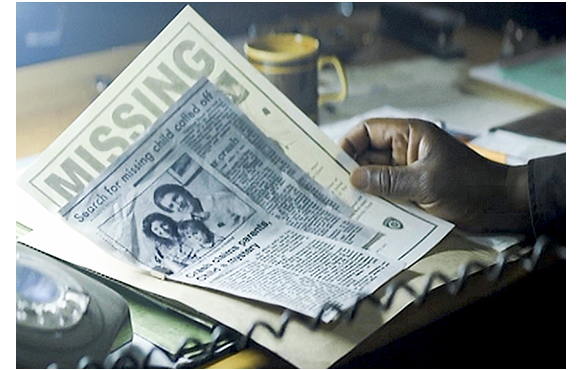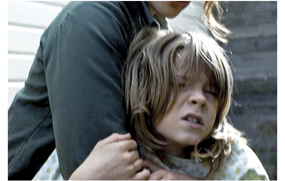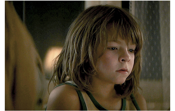 ピートは、幸せな5歳の少年。両親と一緒に車に乗って森の中を走っている。ピートは、両親にもらった絵本を、つかえながら読んでいる。「これは、子犬の物語です。子犬の名前は、エリ…」。母が、「エリオット」と教えてくれる。「子犬の名前は、エリオットです」。「そうよ、偉いわ」。「これから、子犬は出かけるのです… ぼうけん?」。「冒険よ」。「それ、何?」。今度は父が相手する。「冒険を知らないのかい? 私たちは、ちょうど今、そこにいるんだよ。一歩出れば、野生の森。何百マイルも人っ子一人いない。導いてくれるのは星だけなんだ」。「それって、怖いこと?」(1枚目の写真)。「そうだな、それも冒険の一面だ。勇敢じゃなくちゃな。勇敢かい?」。母は、「もちろん勇敢よ。あなたは、これまで会った中で、一番勇敢な子よ」。その言葉に微笑むピート。長々と全セリフを紹介してきたのは、後の展開に密接に結びついているからだ。その時、森から1匹の鹿が急に飛び出してくる。避けようと右に急ハンドルを切った父。車は横転し、飛ばされる荷物が固定されたピートの視点の周りで回転する。面白いアングルだ(2枚目の写真)。ステーションワゴンはルーフを下にして森の中に落ち、両親は死に、車から抜け出したピートは、自分の小さなバックパックに絵本を大切にしまう。辺りはもう暗い。大破した車を見るピートの目からは涙がこぼれている(3枚目の写真)。