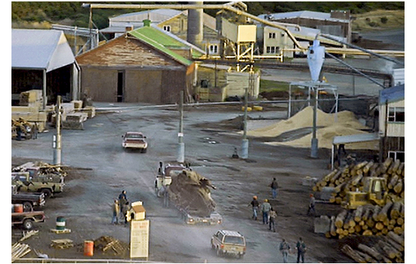 ドラゴンを載せたトレーラーは製材所の大きな倉庫に向かう(1枚目の写真)。そして、騒ぎを聞きつけて集まってきた作業員が入れないように、入口の扉を閉ざす。ピートは、涙を流し(2枚目の写真)、こうしたことの一切が、自分にドラゴンを連れ出させたグレースの策謀ではないかと疑っている。ナタリーは、そうした疑いを晴らすため、積極的にドラゴンを救い出すことに協力。空中パイプラインを伝ってドラゴンが監禁されている倉庫内に2人で侵入する(3枚目の写真)。その時、下では、ジャックが呼んだパトカーが到着し、保安官らが中に入ろうとするが、ギャビンが、「最初に言っておく。俺がこいつを正々堂々と(fair and square)捕まえた。だから、誰が何と言おうと、こいつは俺の物だ」と攻撃的に話す。この人間には、ドラゴンがピートの大切な友達だという認識が欠けているのか、意図的に無視しているのか? このシーンの前に、倉庫内で、ギャビンが兄のジャックに対し、「あんたは工場を持ってる。ドラゴンは俺の物だ」という台詞があるので、後者なのかもしれない。この倉庫内には、グレースも、彼女の父親もいたのに、「ドラゴンがピートを生かしてくれた恩人」だと言って兄弟を諌めないのも、非常に不可解だ。