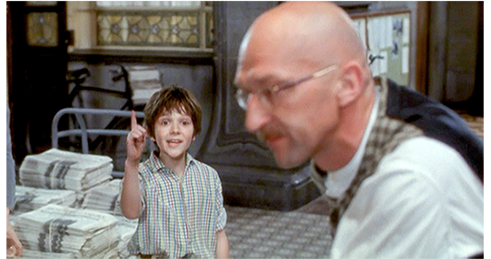 その夜、父は、「ピチェ、話がある」と、真面目な顔で話しかける。「いっぱいいろんなことが起きた。1日に、1人の子供には多過ぎるほどな。だから、1つか言わん。先生のハエを叩くな」(1枚目の写真)。「ダメ?」。「ハエは1日しか生きられん」〔ヨゼフよりハエの命の方が大事なところが面白い〕。「1日だけ?」。「だから、殺すのは可哀そうだ。1日しか生きられないと分かっても、ヨゼフの頭を叩きたいか?」。ピチェは、腫れ上がった手の平を見せる。「ヨゼフめ… あいつは お前を 妬んどるからな」。「ボクを?」。「お前は、ひとかどの人物だ。ハエやヨゼフとは違う」〔ヨゼフはハエ並み〕「自由な精神がある。みんなが それを認めてるから、新聞に載るんだ」。「ちっとも、よくないよ」(2枚目の写真)。