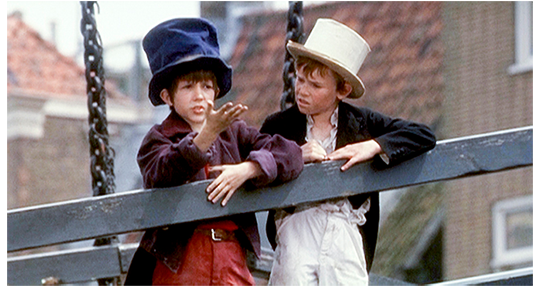 オランダの作家クリス・ファン・アッブカウデ(Chris van Abkoude)の代表作『ピチェ・ベル』シリーズ(1914~36年)を映画化した第1作。原作は8作に分かれていて、内容も特に連続している訳ではないが、この映画では、第1作の『Pietje Bell』(1914年)を基本に、第4作(時系列順には2番目)と第7作(時系列順には4番目)を交え、映画用に全面的に再構成した内容となっている。オランダ映画では、悪戯好きの少年を主人公にしたファミリー映画が多いが、この映画はその頂点に立つ存在だ。その特徴は、何といってもテンポの良さ。ストーリーが次から次に新らたな展開を見せ、観客を飽きさせない。同じ作者のもう1つの代表作『クラムチェ』(1923年)も1999年に映画化されているが(全訳してあるので、そのうち紹介)、原作に忠実なせいか、進行がゆっくりすぎ、主人公が苦労する場面が多過ぎて、心から楽しめない。それは、別の作家の1941年の原作に基づく『シスケ・デ・ラッツ』(1984年)も同様で、暗い場面が多過ぎる。その点、この映画の主人公ピチェは、明るくて友達思い、ユーモラスだが義侠心もあり、プラス、悪戯も最高レベルと、映画でもなかなかお目にかかれないユニークな存在だ。この種の悪戯物は、アメリカ映画では、ジョン・ヒューズの『ホーム・アローン』シリーズ(1990~2012)や、その変形の『わんぱくデニス』(1993)などでも見られるが、悪戯の質は全く違う。それに、アメリカの悪戯物が行動の強烈さで売っているのに対し、ピチェ・ベルは台詞の面白さも大きな魅力となっている。それが、アメリカ流のドタバタを感じさせない大きな理由であろう。惜しむらくは、脚本のディテールは優れているのだが、全体の構成が不統一な点。3つの原作をつき混ぜたため、途中で映画の雰囲気が変わり、それと同時にテンポが遅くなり、創造的な台詞もなくなってしまう。110分の映画の中で、『黒い手』が本格的に現れるのは105分からなので、このあたりでやめておけば、もっとまとまった映画になったであろう。それでも、私がこの映画が好きなことに変わりはないが。
