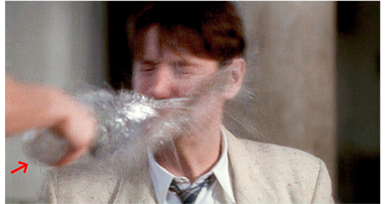そして、フェイリンハを見つけると、「やあ、びしょぬれ男。このバカげた記事書いた『嫌な奴〔geniepige vent〕』は誰?」と訊く。フェイリンハは、「『嫌な奴』? 知らないな」と、とぼける。「嘘つき! ここで働いてるくせに! あんた仲間だから庇うんだろ!」「このバカ新聞とは、おさらばだ!」と叫ぶと、籠に入れてあった切り刻んだ紙片を1階目がけて投げ捨てる(1枚目の写真)。一方、ピチェの父と姉は、警察を訪れていた。目的は、ピチェについての記事を捏造する記者が誰かを突き止めるため。姉は、父が話を聞きに行っている間、外で待っていた。そこに、ネタはないかとフェイリンハがやって来る。姉は、フェイリンハの紳士らしい様子に気を許して、「父を、待ってるんです。父は、弟のピチェ・ベルについて、嘘ばかり書く『嫌な奴』のことを訊きに来たんです」と打ち明ける。姉の美しさに見惚れていたフェイリンハは、「あなたの弟?」と、どっきりする。「ええ。『嫌な奴』って、ポール・フェイリンハ。弟の情報を求めて、警察通いだとか。白を黒と言いくるめるようなこと、許せないわ」。その時、警官がやって来て、「おい、フェイリンハ。女性が捜してたぞ」と声をかける(2枚目の写真)。怒った姉は、「このクズ〔Vuilak〕! 弟は、あんなことしてないわ!」と言うと、手に持っていたコップの水をフェイリンハの顔にかける(3枚目の写真、矢印はコップ)。「弟に構わないで!」。部屋から出てきた父が、「確かな証拠はないそうだ」と姉に言い、姉は「もちろん」と応じる。
