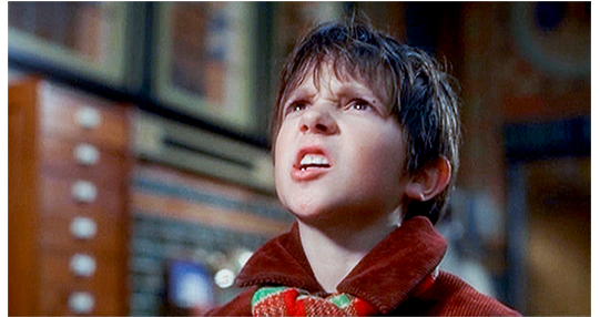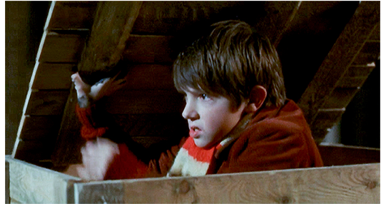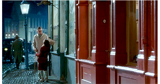 翌日、雪の日、ピチェが遅れて学校に行くと、廊下で、ヨゼフに名前を呼ばれる。振り返って、「なんだ、ヨゼフか。びっくりした」と言うと、ヨゼフは「フェールマン先生と呼ばんか!」と叱り、襟を捉まえて引きずって行く(1枚目の写真)。「行かせてよ。姉さんが待ってる」。「形勢逆転だな。今度は、お前が待つ番だ」。そう言うと、不用品置き場のような場所に無理矢理入れる。そして、意地悪げに「そこで、どのくらい待てるかな?」と言って、ドアを閉め鍵をかける。あまりに寒いので、ピチェは、置いてあった石炭ストーブにマッチで火を点ける。しかし、それは、その部屋用のではなくて置いてあっただけのため、いきなり白い煙が噴き出してピチェをびっくりさせる(2枚目の写真)。煙は窓から溢れ出し、生徒から指摘された姉が火事かと思って部屋の前に駆けつける。中からは、「助けて、早く!」という声が聞こえる。しかし、ドアは開かない。出てきたヨゼフは、「おかしいな… 鍵が掛ってる?」と平気で嘘をつく。「マルタ、出れないよ!」。「ピチェ! ピチェが中にいる!」。慌てた姉が助けを呼びに行った後で、ピチェが「ヨゼフが、鍵を持ってる!」と叫ぶが、姉には聞こえない。ヨゼフは、「ざま 見ろ」とつぶやいて去って行く。次のシーンでは、生徒たちが外に出て、警官に連れられたススだらけのピチェがその前を歩いている(3枚目の写真)。その横では、ヨゼフが取材に来たフェイリンハに対し、「私に、仕返ししようと したんです! あの子は、私に個人的な…」と答えている(4枚目の写真)。deleted sceneを見ると、ピチェは この後で留置場に入れられる〔夕刊を読んだ父が、暗くなってから迎えに行く〕。