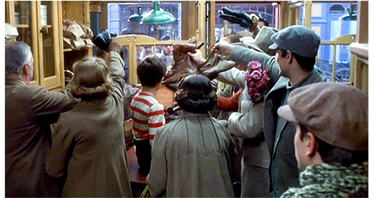 ピチェの父の店は、修理の靴を持って訪れた客で溢れ返っている(1枚目の写真)。そこに、本部長が入ってくる。「ピチェ、迎えに来れて光栄だ」。「何に?」。「パレードを準備中だよ。君と黒い手の お仲間のために。それに、勲章もな」(2枚目の写真)。「それ、いいコト?」。「市長から、ご褒美も もらえる」。「市長さんに言ってよ。スプルートが治るまで待って、って」。そして、いよいよパレードの日。オープンカーに乗ったピチェは、仲間の真ん中に立って、「指揮者の手振り。ヨゼフだと、こう。女王様なら、こんな風…」と、いろいろとやってみせる。スプルートに「君流の、やり方は?」と訊かれると、「ボク? 目を閉じて、百万長者みたいに手を振る…」と両手を掲げるように上げてみせる(3枚目の写真)。
