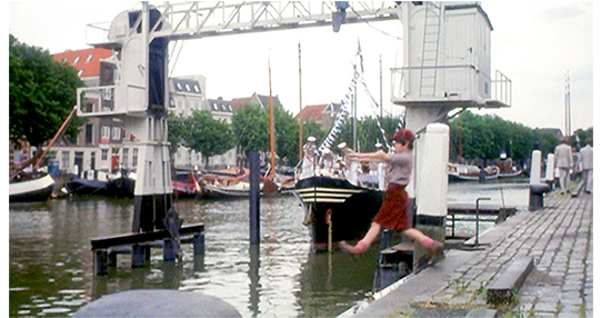 姉は、2時間ほどして、家に電話をかける。父:「ヨゼフが、ピチェを家に帰らせた?」。姉:「ええ、2時間くらい前」。「運河に落ちてなきゃ いいんだが」。その話は、巡り巡ってフェイリンハ社長の元にも届く。「ピチェ・ベルが行方不明だとか… 最後に見られたのは河岸なので溺れたのかも。記者を送りますか?」。「いや、私が行く」。作業員が、長い引っ掛け棒を使って底を浚っていると、ピチェの被っていた帽子が引っかかる。父は、「あの子の帽子です」と確認する。潜水夫が出動する。フェイリンハは、「『最新ニュース』 の記者です。あなたが父親ですか?」と話しかける(1枚目の写真、矢印は帽子)。一方、学校では、ヨゼフが、「大丈夫、『憎まれっ子、世にはばかるさ〔Onkruid vergaat niet〕』」と言って、慰めて(?)いる(2枚目の写真)。「ピチェは そんな子じゃないわ。あの子は、ちょうど…」。「イラクサ〔brandnetel〕?」。「まさか、バラ〔roos〕よ」。「どちらにも、トゲ〔prikken〕があるね」。