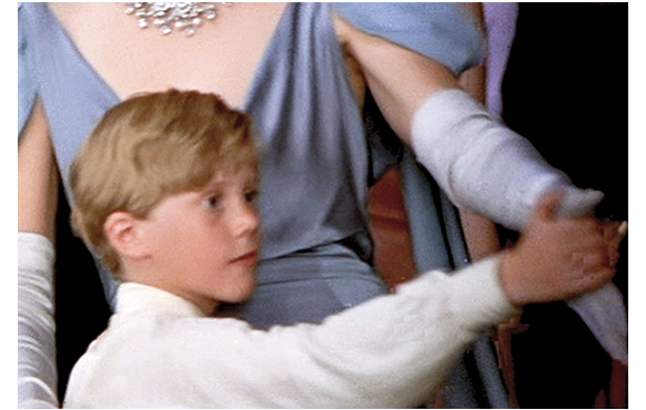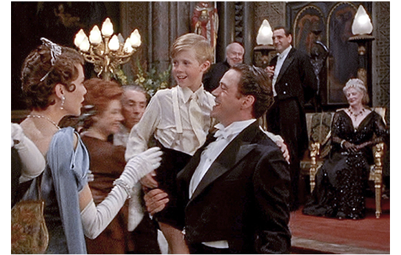 舞踏会のシーンから3枚。1枚目は、王子が王妃に抱かれている姿。皆が踊っているので、体を振って楽しんでいる。左隣は国王。2枚目は、王妃と踊る王子。王妃は、弟のリヴァーズ伯アンソニーが姿を見せたので、大喜びで迎えにいく。寄っていった王子は、リヴァーズ伯に抱き上げられる(3枚目の写真)。伯爵を演じているのは、アイアンマンことロバート・ダウニー・Jr。