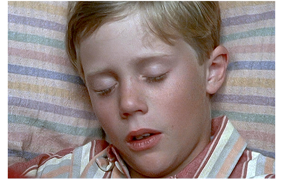 王子の最後の登場シーンは、リチャード3世となったグロスター公の命令で、刺客により、赤い布を被せられて窒息死させられるシーン。一瞬、直前の寝顔が映る(写真)。