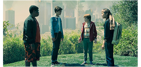 異種生命体による地球侵略の映画は山ほどあるが、13歳の少年が主役で、実際に世界を救ってしまうというありえない話は、この映画が初めて。評論家の中には、その「ありえなさ」を批判する向きもあるが、楽しければいいという観点に立てば、それなりに良くできている。二番煎じでないハラハラドキドキもあり、世界を救う方法にも無理はない。以前、『Battle: Los Angeles(世界侵略: ロサンゼルス決戦)』(2011)という映画を観たことがあるが、世界侵略にもかかわらず、ロサンゼルスでの戦闘ばかりダラダラと2時間近くも見せられ、呆れて腹が立った。そんな下らない映画の製作に7500万ドルが投じられたのに対し、この映画は、それから8年も経つのに僅か1570万ドルで製作された。CGが多用されているが、それほど手を抜いているとも思えない。基本的に子供しか出て来ないので、俳優の出演料が安いせいなのか? ところで、映画やTVの配信会社だったNetflixが、オリジナル作品(ドラマ)の製作に関わることになったのは、2015年から。その最初の作品『Beasts of No Nation(ビースト・オブ・ノー・ネーション)』は、ヴェネチア国際映画祭の金獅子賞の候補となり、32の賞を獲得した。『The Meyerowitz Stories(マイヤーウィッツ家の人々)』(2017)はカンヌ国際映画祭でパルム・ドールを争い、その際、審査員長が「劇場公開される予定のない映画は、最高賞パルム・ドールのみならず、他のどんな賞を受賞するべきではないと考える」と発言して波紋を呼んだ。そして、『Roma(ROMA/ローマ)』(2018)はヴェネチア国際映画祭の金獅子賞、アカデミー賞の外国語映画賞・監督賞・撮影賞を受賞し、劇場公開もされた〔私は、嫌いだとずっと前に述べた〕。『リム・オブ・ザ・ワールド』は93番目の作品として2019年5月24日にオンライン公開された。世界を救うことになる4人は、①主演のジャック・ゴア(撮影時13歳)が演じるアレックス、②これが映画への初デビューとなるイタリア生まれのアレッシオ・スカルゾット(撮影時15歳)が演じるゲイブリエル、③最年長のベンジャミン・フローレスJr. (撮影時16歳)が演じる「観ていて不快感しか覚えない」ダリウシュ、④紅一点の日本生まれのミヤ・ケック(撮影時11歳)が演じる中国人のジェンジェン。ミヤ・ケックは日本人の両親の元、東京で生まれたが、アメリカ人のケック家の養子となった後、2015年からTVに主演するようになる。映画はこれが2本目。昔は、中国人が日本人の役をしていたものだが、中国の存在感が上がったことで、日本人が中国人の役をする時代になってしまった。寂しい気がする。また、ベンジャミン・フローレスJr.について、日本人の映画評の中で、「子供たちは13、14歳の設定のようです。卑猥なジョークや性に関するセリフ/シーンが多すぎます」とあるが、猥雑な言葉を用いるのは、16歳(高校生)のベンジャミン・フローレスJr.だけだし(台詞だけで「シーン」はない)、日本語字幕がわざと卑猥に訳している部分もある。この黒人子役は、それ以外にも、あらゆる社会的規範に反する行動を取り、先にチラと書いたように、見ていて不快感しか与えない。これまでに彼が出演した映画では、何れも下品な下劣な子供を、実年齢より幼く見えるように演じている。だから、この役に選ばれたのかもしれないが、「世界を救う」というテーマにしては、確かに不適切かつ邪魔な存在で、これは脚本のZack Stentzの明らかなミス。黒人に対しても失礼だと思う。Zack Stentzの脚本は、これ以外にも、偶然の上に偶然を重ねさせるような筋立てや、恣意的な選択が随所に見られ〔アメリカのスーパーヒーローものには多いが〕、レベルが高いとはとても言えない。本人は、『インデペンデンス・デイ』に遭遇した『グーニーズ』に、『スタンド・バイ・ミー』の味付けを、と言っているが、先輩の3作に対して失礼だ。