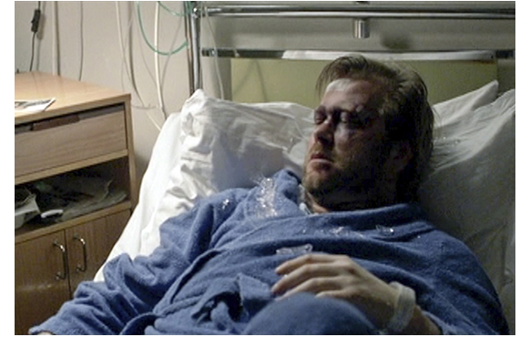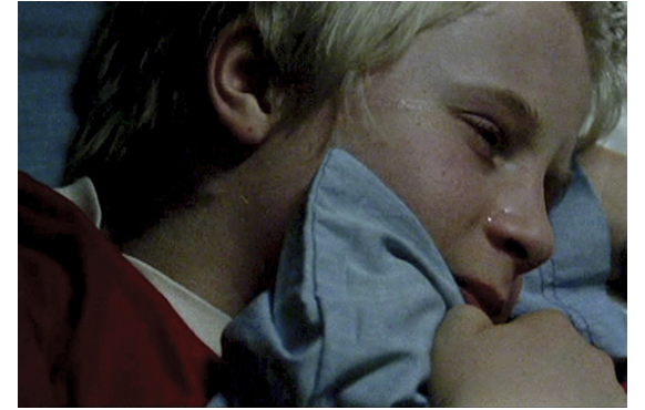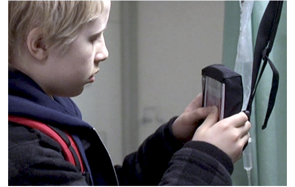 夜、こっそりと抜け出して病院に向かうポール。何とか病室まで辿り着き、重傷を負った父の横で眠り込む。深夜、看護士に起こされ、「ここにいちゃ、いけないんだ」と言われたポールは、自分のアパートに戻る。夫婦部屋で散乱したままの服の匂いをかぎ、ママのベッドに横になるポール。翌日病院で、父がベッドの脇のモルヒネの定量投与装置を見上げている。看護士を呼んで増量するよう頼むが断られる。そこに、ポールが来る。きれいな服や、毛布まで持ってきたのだ。そして、本を見せ、「読んであげる。難しくなさそうだから」と、ポツリポツリと読み始める。下心のある父は、「とても良くできた。頑張ったな」と褒めた後で、「イギリスにサッカー観戦に行こう」と言い、ポールを喜ばせる。こうして油断させておいて、何も知らないポールに「そこの柱に、黒い箱 架かってるだろ?」と言う。ポールが手に持つと、「グレーのボタンが2つあるだろ? 上の奴を押してくれんか?」。「これ?」。「そうだ。そしたら、左にあるボタンも同時に押すんだ」。「これ、何なの?」。「ビタミンと薬の入った水だ」。ピーと音が鳴る。「鳴ってもいいの?」。「いいんだ。もう十分だ助かった。もっと読んでくれるか?」。そして、ポールは続きを読み出した。モルヒネは過剰投与で死に至る。自分が自殺したくて、息子にそれを黙って幇助させる。これはもう犯罪行為だ。これほど悪質な父親が映画で描かれるのを見たことはない。声を出して本を読んでいる間に看護士が入ってきたため、ポールは部屋を出る。その直後、看護士は父の心拍停止状態に気付いて緊急処置。お陰で一命を取りとめた。
