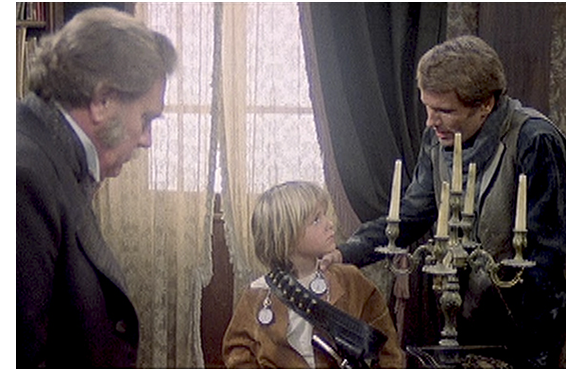 2人が、井戸にある場所までやって来た。そこで、少年が足にケガをしてるのに気付く。「痛むか?」。「いいえ、ただの かすり傷です」。しかし、痛みで少年は気を失う。「名前は?」。「バレットです。トーマス・バレット」。「まさか。トーマス・バレットは、60才位のハズだ」。「僕は、トーマス・バレット二世。それは、叔父でしょう」。憎いバレットを助けてしまったことに気付き、腹いせに傷口に酒をかけるロイ。少年は痛さに悲鳴を上げた。わめくな、バレットと知っていたら助けなかったと冷たく言い放ってロイは去っていく。
