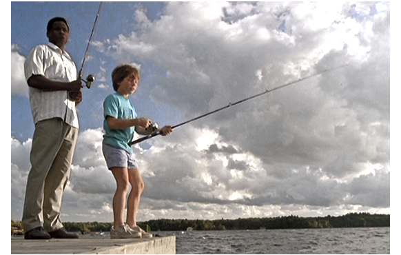クリスは、祖父母とサンタフェに船遊びに行くことになる。この頃には家主の女性との関係も修復し、見送りにきた女性から、「楽しんでらっしゃい」と声をかけられると(1枚目の写真)、初めて抱きついた。そして、祖父母のオープンカーに乗り、いざ出発(2枚目の写真)。酋長ブラック・クラウドも一緒だ。3人が発った後で、父はサンタリア教の責任者を訪れ、クリスの貝を見せる。そして、「なぜ、家政婦はこれを息子から取り上げたのだろう。これはサンタリアかね?」と尋ねる。「サンタリアではない。黒魔術ブルハリアだ」「貝は、破壊と疫病の神、原始的な邪教の神の象徴だ」。「息子と、一体何の関係が?」。すると、その責任者は、昔、アフリカで、ある部族が干ばつや洪水や侵略の脅威にさらされた時、3人の少年を生贄として神に捧げたことが発端だと話す。折りしも、ニューヨークで、2人の少年が生贄として殺されている。責任者は、4日後の夏至の日に、クリスが生贄にされると警告する。驚愕する父。一方、サンタフェでは、海辺の家に滞在している祖父母の元には、麻薬更生協会の会長と、謎の黒人も加わっている。生贄にされる危険が迫っているとも知らず、桟橋で釣りをするクリス。その背後には謎の黒人が立っている(3枚目の写真)。