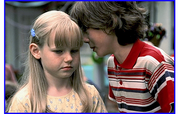 S 8mm映像は、7歳の時の野外パーティのシーン(写真S-1)。ケイリーはエヴァンに寄ってきてキスをする。すごく好きなのだ。この映像から、エヴァンはパーティの中の自分自身に侵入する。エヴァンの目的は、両親と別れる時に、ケイリーを母と一緒に行かせること。そうすれば、すべての事件はなかったことになる。そこで、心を鬼にして、エヴァンはケイリーに、「大嫌いだ。もし今度寄ってきたら、殺してやる。家族ごと全員だぞ」と脅す(写真S-2)。このあまりの言葉に、母親の元に走って行って泣くケイリー。これで、ケイリーが、エヴァンを慕って無理に父親と暮らす可能性はなくなった。自分の払った犠牲に納得しながら、「さよなら」と寂しそうに言うエヴァンがとてもいい(写真S-3)。