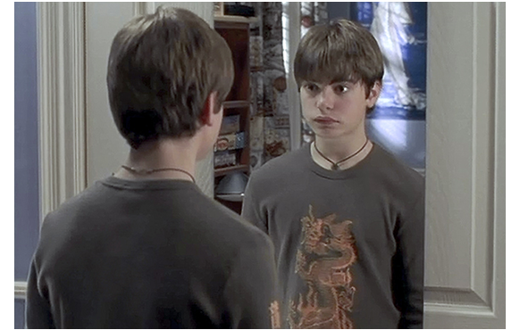 朝、中学校に通うウイル・ブラウニング。好きなヨーヨーで遊びながらの登校に、上級生からの「ヨーヨー坊やだぜ」「学校まで持って来るなんて信じられん」などという声が耳に入り、思わずヨーヨーを隠す(1枚目の写真)。気が小さくて、他人のことを気にし、目立たないようにすることに汲々とするタイプだ。唯一の友人はチャッキー。朝一番の話題は、今日渡される成績表のこと。ウイルは、「ウイル・ブラウニング法のすり抜け術に敵うものなんかないさ(I'll show you that the will browning method of sliding by just can't be beat)」と平然としている。ウイルがロッカーに付くと、こんなウイルにもお熱の女の子ヘザーが、わざわざロッカーの場所をウイルの近くに移して来て、学校のダンス・パーティーに誘う(2枚目の写真)。ウイルは、踊り方を知らないと言って断る。こんな美人なのに、なぜか付き合いたくないらしい。映画での順序は逆になるが、授業が終わってから仇敵スコッティーに軽く接触してしまい、怒鳴られるシーンがある(3枚目の写真)。ウイルから昼食代を巻き上げた時、それを直接先生に訴えられ、停学にされたことを根に持っているのだ。