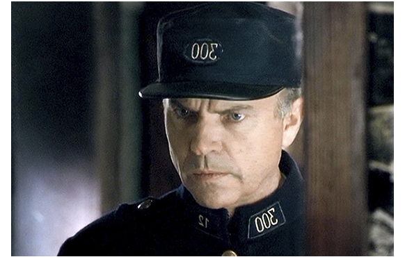 ルドヴィッチと獣医が、園内のがらんとした食堂で夕食をとっている。獣医:「戦闘が収まるまで、数日ここに留まっていた方が良さそうだな」。ルドヴィッチ:「どこに寝るんだ?」。「こっちが訊きたい」。「門番の詰め所がある」。御互いぶっきらぼうなやり取りだ。その間も、外では銃撃が続き、動物達も怯えている。動物園の近くの市街で、ひときわ大きな爆弾が炸裂する(1枚目の写真)。ルドヴィッチは酒を持って詰め所に行き、非礼な態度を詫びる。獣医:「君は、心の奥のどこかでは きっと良い人間なんだ」。「長いこと、誰もそんなこと言ってくれなかった」。「観察した結果さ」。「それで、良い人間は、悪い時代に何をしたらいい?」。「正しいこと」。なかなかいい言葉だ。この先、酒を飲みながらの会話で、ルドヴィッチの過去の一端が明らかになる。ルドヴィッチ:「壁が崩れた時〔ベルリンの壁のこと〕、はいサヨナラさ。25年間内務省に務めたのに、家1軒持てずじまい」。「内務省にいたのか?」。「ただの仕事さ」。「みんなそう言う」。内務省ということは、治安活動からスパイまで含むので、ルドヴィッチの暗い過去を連想させる。翌朝、ドラコフ中尉の一隊が動物園に乗り込んでくる(2枚目の写真)。「何か動くものを見たら撃て」。そして、ルドヴィッチを見つけると寄って来て「ここの責任者は?」と訊く。「私になるのかな」。「なるのかな?」。「みんな出てった」。それを聞いた中尉、ルドヴィッチと肩を組んで部下の前まで行くと、「これぞ、愛国者だ。この顔を見ろ。地の塩(社会をよくする人)、わが民族の顔だ」と讃える(3枚目の写真)。しかし、その後で獣医が見つかり、人種が違うということで連れ去られてしまう〔結局、後で、動物園の前に吊るされ、ルドヴィッチが埋葬する〕。