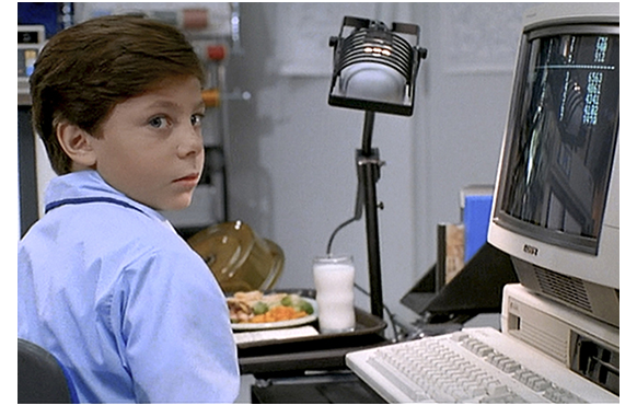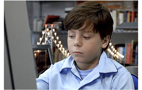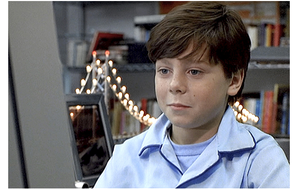 マーティンは、ゾーン4へのアクセス許可を得るため、シェパード博士のファイルにこっそりアクセスし(1枚目の写真)、博士のアクセス権限コードを自分のファイルにコピーし、ニヤリとする(2枚目の写真)。そして、自分で作った各種分析用のヘルメットを装着し、探検気分でゾーン4に侵入する。マーティンは、ハエの飼育箱を見つけ、見入る(3枚目の写真)。ハエに近い人間だからか? その後、実験用の犬の飼育箱を発見。1匹を箱から出し、抱きながら話して聞かせる。「あのね、僕は病気なんだ。すごく稀な病気で、これまでにかかったのは2人だけ。お父さんと、今は、僕。だから、病気の名前も、ブランドル加速成長症候群。お医者さんの話では、僕の成長も すごく速いんだって。悪くないと思うけど、どうやら、死ぬのも すごく早いみたい。そんなの最悪だ」(4枚目の写真)。