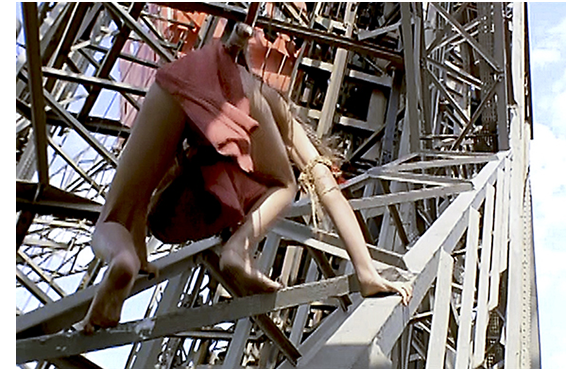 ここから、私のお気に入りの、エッフェル塔を登るシーンが始まる。ミミは、シャン・ド・マルス公園の南東側から塔に近付いて行き(1枚目の写真)、塔脚を第1展望台(高さ57.6メートル)に向かって登り始める(2~5枚目の写真)。そして、第1展望台にある人気のレストラン、ル・ジュール・ヴェルヌ(Le Jules Verne)で食事をしている日本人観光客の目の前を登り(6枚目の写真)、第2展望台(高さ115.7メートル)を目指す(7・8枚目の写真、鉄骨からぶら下がって危なそう→スタントなしとは凄い)。最後は、第2展望台のすぐ上にある梁の上に座ってパリの俯瞰を楽しむ(9~11枚目の写真)。第2展望台のすぐ上というのは、10枚目の写真で、頂部に見える第3展望台の下の方で中央のメイン鉄骨が逆Y字型になっているが、その分岐点から5層下にいることから確定できる。最後の11枚目の写真で、正面真下に見えているのはシャイヨ(Chaillot)宮。
