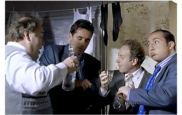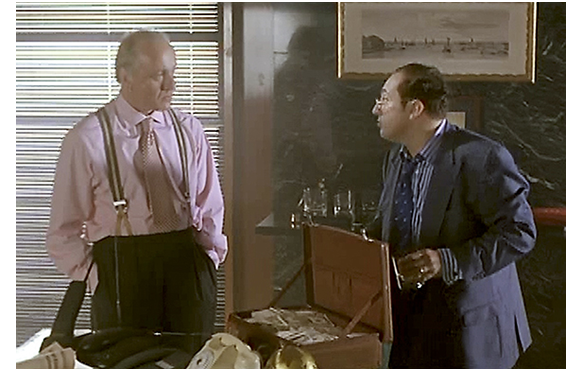 そこに、出かける用意を整えたリシャールが登場。ミミが、熱帯魚の入った大きな水槽を見ているので、「いいだろ? 奮発したんだ」と自慢する(1枚目の写真)。その先に、ミミがセーヌ川を見つけるシーンがある。家の目の前を川が流れている。父は、「セーヌ川だ。遡ってくと、エッフェル塔に着く」と教える〔伏線〕。奥さんが、「お庭を案内するわ、ミミ・シク」と言うと、弟は笑い、姉は「ほんと、変てこりんな名前」と批判。リシャールは「12歳で、ああも生意気とはな」と嘆く。奥さん:「全寮制の女子校に入れないと」。父は、「庭のどこかに吊るせば ハンモックで寝ます」と言って、畳んだハンモックを渡す。そして、ミミに「いい子に してろよ」。「ワカテペ、バブーン」。手を叩き合う。ステファンとリシャールが向かったのは、ロシア人のホテル。そこでアタッシュケースに詰まった現金を見せられる。弁護士:「ご覧の通り、約束を守る人なんです」(2枚目の写真)。リシャールが「さっそく 数えましょう」とアタッシュケースに手を突っ込むと、ロシア人は蓋をバチンと閉める。手を挟まれて痛がるリシャールを、ロシア人は罵(ののし)る。ステファン:「ひどいな! いったい何と?」。弁護士:「信用されてないと 思ったのです。数えるなら、取引はなかったことに」。リシャールは、「なら、数えません。結構です」と引き下がる。そうした同僚の態度を見たステファンは、彼を廊下に連れ出し、「頭が おかしいんじゃないか? ロシア・マフィアの金だぞ。中止する」ときっぱり反対する。「じゃあ、どうする? もう、110ドル〔約3170万円の損失〕まで下がったんだぞ!」。「俺たちで 被る。俺は借金。お前は家を抵当に」。「俺には子供がいるんだ!」。「俺にも いる」。「ウチの子は、ソニーやニンテンドー。バナナやキャット・フードじゃ済まない」。