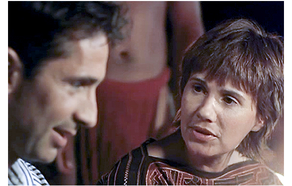 その日の夜は「成人の儀式」。子供たちがステファンのそばに寄ってきて、「バブーン、バブーン」と呼びかける。「胸毛が猿みたい」なので、これがステファンの「名前」になり、ミミも「パパ」と呼ばず「バブーン」と呼ぶ。「成人の儀式」を受けるのは、2人。そのうち1人がミミだ。この部族では、13歳になると「大人」とみなされる。成人の儀式は、村長が持つ赤く焼けた枝を握るというものだ。ミミが枝を握ると手から煙が出る(1枚目の写真)。かなりの火傷のはずだ。母は、村長の言葉を翻訳し、「ミミ・シクは村の誇り。父親のあなたも、誇りに思えって」と言う。その時、ミミが寄ってきて、「バブーン、大人になった。明日、村長さんと一緒、パリ行く」と言い出す。何のことか分からなくて、妻に「パリって?」と訊くと、「パリに連れてくって、約束したでしょ」と教えられる(2枚目の写真)。「待てよ、そんなの問題外だ。こんな連中をパリへだと? 明日は、君とカラカスの領事館に行く」。そして、ミミには、「鉄の鳥に乗ってパリに帰る」と鳥の真似。ミミは「ワカテペした」と迫り、母は「約束 破るの?」と責める。「いつか連れ行くとは言ったが、明日は不可能だ。話にならん! 忙しいし、結婚も控えてる」。「明日… 不可能… 忙しい… そんな言葉、ここには ないのよ! この子だって理解できない」。「君こそ、偉そうなこと言えた柄か! こんな育て方して何てひどい母親だ! 児童相談所に訴えてやるぞ!」。「突然来て、何よ?! 息子との約束一つ守れない男が!」。結局、ミミ1人を、パリに連れて行くことに。
