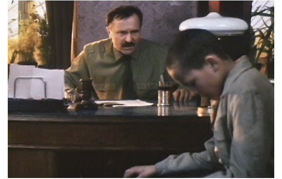 ヴァディクの2度目の所長室。今度は雰囲気が違う。いきなり紙を渡される。それを読んだヴァディクは、「こんなことは言ってません」「何の組織です? 僕、組織の一員なんかじゃありません」。所長は「釈明書が必要だ。これは標準様式だ」「君は謝罪し、二度とやらないと誓う」「署名しろ」と迫る。「二度としませんとは言いました」、でも、「わが国の体制を破壊する非合法組織の一員だ、なんて言ってません」。「これはただの形式だ。分からないか?」「署名すればウチに帰れる」。ヴァディクは、「署名すれば、さらに罪が重くなる」と反論。さらに、「ママなら、署名するなと言います」。「なぜ、そう思う?」。「嘘ですから」。笑い出す所長。しかし、その後で、「ここは読んだか?」「ここだ。この隅に小さく書いてある」と言うが、ヴァディクが見ようと屈むと、頭を机に叩きつける。歯を折って床に倒れるヴァディク。