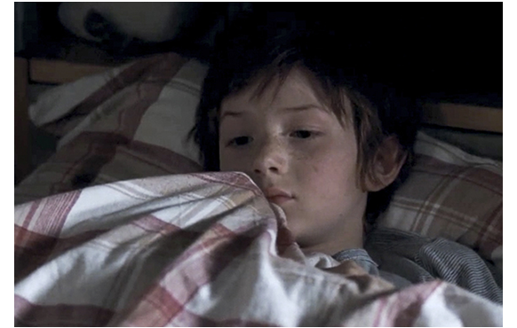 その夜、トマスはベッドで何事か考えている(1枚目の写真)、あまり意味はないが、10歳のトマスの出番も最後になったので、写真を添付した。トマスはベッドに入り、やはり何事かを考えている(2枚目の写真)。そして、翌朝、ドアが開くと、そこはもう12年後の世界。