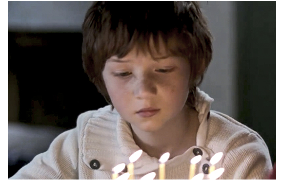 しかし、破綻はすぐにやって来た。トマスがクローンであることが、元カノの告発で島じゅうに知れわたってしまったのだ。トマスは、天井から松ぼっくりを吊るして誕生日のパーティの準備をする(1枚目の写真)。しかし、予定の時間を過ぎても誰も来ない。母が、電話をかけて「招待状、渡したわよね」と訊く。何と言われたのかは分からないが、母は、「でも…」と言い、最後に、「分かったわ」と言い電話を切った。そして、用意しておいたケーキの蝋燭に火を点し、「誕生日おめでとう、トミー」と言って、トマスの前に置く(2枚目の写真)。「でも、他の子が…」。「2人だけでやりましょ」。「2人。でも、なぜ?」。「誰も来ないから」。「なぜ来ないの? コピーのせい?」「でも、あのコピーの子、呼んでないよ。良くないことでしょ」「なぜ来ないのママ、教えて」「ママ!!」。母:「みんなの母親が許さないから」。「どうして?」。「バカだから」。「バカ?」。すすり泣く母。そんな母を抱き締めるトマス(3枚目の写真)。一番切ないシーンだ。一番問題なのは、最終的に、トマスが何も打ち明けられていないこと。代りにレベッカがしたことは、島の集落から逃げ出すことだった。