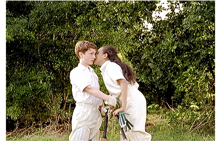 デイヴィッドは、母に、「サミュエルズさんは、僕をコーチしてくれてる。僕には、コーチが必要なんだって」と説明する(1枚目の写真)。「それで?」。「ジュディのおじいちゃんは、ジャマイカでプレーしてたって。あっちではみんながやってるんだ。女の子も」〔先に紹介したサーの称号を与えられたクリケット選手22人中10人がジャマイカ出身〕。母は、「誰が、お隣とプレーする許可を与えたの? お父さんに訊いた?」と非難するが、デイヴィッドは「とってもいい人たちだよ。マンゴーもくれた。メロンや桃みたいな味」と悪びれる様子もない。「私達を面倒に巻き込む気? 次からは、まず訊きなさい。分かったの?」。母の怒りはなかなか収まらない。しかし、その直後、「家の中に入っちゃだめよ。庭にいなさい」と言う。これは、練習の続行を認めたことを意味する。「庭にいれば、パパもだめとは言わないと思うわ」。次のシーンでは、父が窓から息子の練習を見ている。デニスの熱心な指導ぶりを見れば、黙認するしかない。ジュディの母が、休憩時間にとコーラを持って来る。そして、デイヴィッドに、「あんた、ユダヤの子なんだね?」と話しかける。「イエス様とおんなじユダヤの子と 付き合えるなんてね」。ジュディが、「ユダヤ人と会ったことないんよ」と説明する。「聖書の人たちだで。あたしたちに、創世記からルツ記までの旧約聖書をくれた人たち」。それに対し、デニスは、「子供は子供だでな。どの子も、クリケットのプレーの仕方を習う必要あるで」と言う(2枚目の写真)。しめくくったのは夫人。「お隣になれて嬉しいだで」。