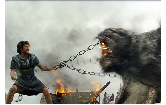 前作の『タイタンの戦い』は、ペルセウスの神話とかなりかけ離れた内容だったが(そもそもクラーケンはバイキングの創造物でギリシャ神話と関係ない)、『タイタンの逆襲』はクロノスが暴れ出すという、さらにあり得ない設定。先行する『パーシー・ジャクソンとオリンポスの神々』の影響を多分に受けている。だから、これをギリシャ神話の映画化と思ったら大間違い。単なる娯楽作品だ。映画の方は、ゼウスが息子アレスの反逆により、タルタロスの牢獄に捕らえられ、それを救おうとするペルセウスを話だ。漁師としての平和な生活を離れ、タルタロスに潜入し父を助けるが、その時にはクロノスは復活してしまっていた。アレスを倒し、三神器の槍でクロノスを倒すペルセウス。ジョン・ベルが演じるヘレイオスは、漁師の村と神殿への訪問、アレスとの戦い、クロノスを倒し新たな旅立ちの3ヶ所で登場する。
