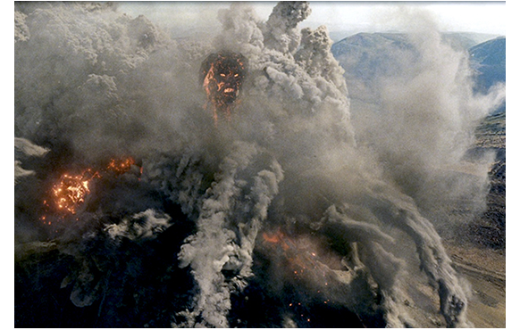そして力が弱ったところで、神器ゼウスの雷を奪ってアレスを刺し貫く。その瞬間に走る稲妻。一方、外では、巨大なクロノスがタルタロスを破壊して姿を現わし、ギリシャ軍に向かって火焔を浴びせていた。
