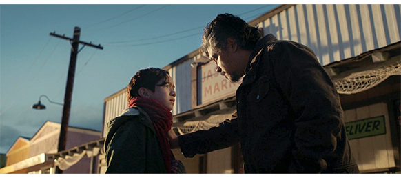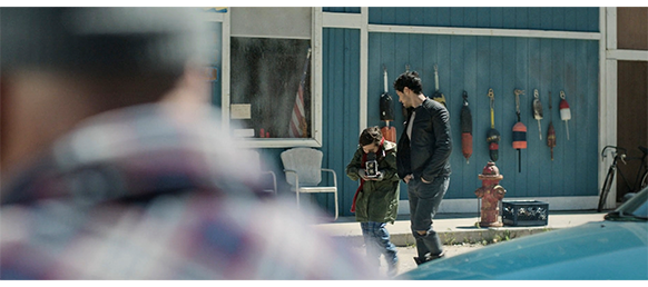 オスカーの母エヴリンが働いているバーでは、昼間から漁船のオーナーのマニーと、漁船員の3人がテーブルを囲んでいる。マニーが席を立ってカウンターに向かうと、漁船員の1人が 「今日、蟹の市場価格がどこまで下がったか知ってるか?」と不安げに仲間に話しかける。そこに、エヴリンがビール瓶を3本持ってやって来ると、顎髭の長い漁船員がエヴリンの手をつかんで、「新しくここに来た女の子の指輪を見ると、あんたら2人より頼り甲斐がありそうだな」と2人を冷やかし、こうした場所で働いた経験のないエヴリンは、「今度手を掴んだら、腕を折るわよ」と、お客を相手に “相応しくない” 言葉をぶつける。一方、バーの店主のダーモットはマニーに、「何人かと話したんだが、連中、俺たちを助けてくれると思う」と打ち明ける。マニーが 「どんな連中?」と訊くと、「サイレン・グループっていう、不動産投資家の集団なんだ」と答える。「あんた、港の向こうの地所のこと話してるのか? あそこに何か造るのがホントにベストなんか?」。「ああ、あそこは最高の場所だからな」。「もし、あんたの思い通りに事が運べば、ジャスパーの入り江は、ここに住んでる人のもんじゃなくなっちまうぞ」(1枚目の写真)。「あんた、俺の親爺そっくりだな」〔この会話は、あとで大きな進展を見せる〕。その頃、オスカーはカメラを持って撮る物を探している(2枚目の写真)。森の中の小川や、木洩れ日、アゲハ蝶などが映るが、オスカーがそれ撮影したようには見えない。結局、家に帰ると、郵便箱から郵便物を取り出し、ポツンと離れて建つ一軒家に入って行く。母は、バーで働いているので、家の中には誰もいない。母は帰りが遅いので、夕食も自分で作らないといけない。辺りが暗くなった頃、バーの主人のダーモットは、エヴリンに 「あんたがここに来てから、5・6週間かな?」と訊く(3枚目の写真)。「そんなトコね」。「気に入った?」。「ええ」。「良かった。あんたくらいの年の人はみんな出て行ってしまい、誰も入って来ない。もっと、このコミュニティに馴染んで欲しいな」。「それって、お客にもっと優しくしろってこと?」。「みんなに関心を持って欲しいんだ。ほとんどの男たちは、家族思いの連中だから。それに、あんたには子供がいるだろ?」。