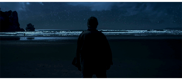 その直後の場面、フランクの家に男が現われ、「桟橋に固定されていないあなたの船の上で流し網を一巻き見つけました。遠洋流し網の禁止法に違反しています」と言って、網を見せ、黄色の紙を渡す(1枚目の写真)。フランクは 「わしは、1980年代から流し網なんかやっとらん。どういう積りで、わしの船を嗅ぎまわっとるんじゃ!」と怒鳴ると、相手は、「この港の他の船の半分以上で流し網が見つかったんですよ」と平然とした顔で言い、立ち去る。その日の夜、バーに来たエリックが酔っ払って倒れそうなのを見て、マニーが 「エリック、大丈夫か?」と声をかけると、エリックは 「わしのことは構わんでくれ」と言う。この日は、エリックがまだ若かった頃、息子を亡くした日なので、マニーは 「なあ、今日があんたにとってどれほど辛い日なのかくらい 俺だって分かってるんだ。一緒に飲まないか?」と誘うが、エリックは 「わしなら大丈夫じゃ」と言ってバーを出て行く。代わりに、そこに入って来たのはフランク。「読んでみろ」と言って黄色い紙を息子のダーモットに渡す。それを見たダーモットは、「海上パトロールからの罰金命令だ。それが、どうしたんです? 文句なら彼らに言えばいいでしょ」と言う。フランクは 「罰金が問題じゃない! これは脅迫じゃ! 11月の投票までに、わしらが遭遇するであろう、たくさんの脅迫の一つじゃ! サイレン・グループを有利にするための陰謀に違いない!」と言う。「親爺さん、それは被害妄想ですよ。彼らは不動産業で、海上パトロールとは無関係です」。「被害妄想じゃと? もし わしが大企業で、このリゾートが建設されるかどうかに何百万ドルもの権益は絡んでいるとしたら、小さな田舎町の世間知らずどもに投票を任せておくじゃろうか?」(2枚目の写真)「それとも、こっそり わしに有利になるようするじゃろうか〔put your thumb on the scale〕?」。2人は、また口論を始める。その頃、バーを出て行ったエリックは、夜の海岸に行き、じっと海を見つめている(3枚目の写真)。