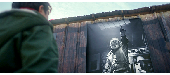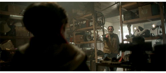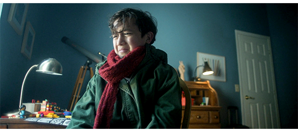 オスカーは、子供などほとんどいない寒村では珍しい存在で、その奇妙な格好〔それほど寒くないのに、真っ赤なマフラーを首に巻き付け、フード付きのジャンパーを着て、半世紀以上前のカメラを首から掛けている〕から、上級生の虐めの対象になっている。一番ワルのデールが、「よお、ぼんくら、元気か?」と言って肩を組むと、「寂しかったぞ。その古いやつ、どこで手に入れた? ゴミ捨て場か?」と訊く(1枚目の写真)。オスカーは隙を見て走って逃げ、3人に追われると、最初に見つけたドアから中に逃げ込む。ドアの外側には 「エリックの修理/配達・置き配」と書いてある。デールにとって老人のエリックは怖い存在だったので、オスカーに 「逃げることはできても、隠れることはできんぞ」と、脅し文句を言う。ドアの内側では、オスカーがどうしようか迷っている(2枚目の写真)。オスカーのいた場所は、店の中の倉庫のような場所で、その先の店舗の方から話し声が聞こえてくる。シスター(修道女):「このままでは、私たちより先に、村が死んでしまうわ」。エリック:「村は生き残りますぞ、シスター。より良い未来への希望はあるもんじゃ」。「でも、あのちんぴら連中には、希望などありませんよ」。「何たることを。わしらがガキの頃、両親たちも似たようなこと言うとったでしょうが?」。猫を抱いたマーガレット:「小さな子は全然話さないわ。ただ見てるだけ」。「小さな子?」。シスター:「数週間前にハーパーズ・プレイスに引っ越してきたばかりの、ちょっと変わった子なの」(3枚目の写真)。マーガレット:「母親は、その子をほったらかしにしてるのよ」。「ミサには一度も出て来ないけど、チャリティーイベントの缶詰はどんどん持っていくわ」。そして、2人の女性は店を出て行く。