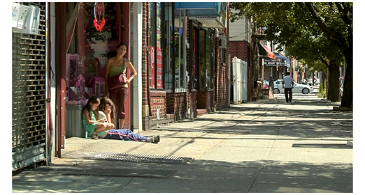 翌日、マリアナはアンドレアを抱き、ガブリエルにエンパナーダのトレイを持たせて街に出て行く(1枚目の写真、矢印)。そして、交差点の反対側にスペイン系の女性4人が集まっているのを見つけると、走って行って1個1ドルで売ろうとするが、誰も買わない。そこで、2個1ドルに下げると、買おうとする女性が現われるが、実は、この女性達は、求職のために集まっていて、その時、車が乗り付け、4人は車に駆け寄り、うち2人が車に乗り込む。そこで、マリアナは、この求職に挑戦しようと、エンパナーダの販売を子供2人に任せ(2枚目の写真)、求職の列に並ぶ。次に来た車から降りた女性は、“ボタンを縫い付けることができる女性2名” を探し、マリアナを含め4人が手を挙げる。マリアナは先頭にいたので、2人の中に選ばれるが、それを見た子供2人が立ち上がり、アンドレアが 「ママ、これ忘れてる」と呼びかける。子守付きでは困るので、別の女性が選ばれる。その夜、アパートに戻ったマリアナは、不要になった結婚指輪を売ろうと考える。