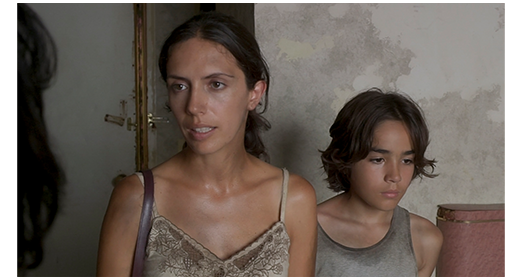 翌朝、マリアナは、マットレスに横になっているガブリエルに、お腹ら空いたら、ストーブの上の米と豆を食べるように言うと、エンパナーダのトレイを持って、1人で出かけようとする。アンドレアは置いていかれるのを嫌がるが、マリアナは、ゲームでかくれんぼをしないかと持ち掛け、アンドレアが両手で目を覆って「1,2,3,4,5」と数えているうちに、姿を消す(2枚目の写真)。マリアナは、今までより強引に、交差点で信号待ちしている車に駆け寄って、「お願い、セニョーラ」と、エンパナーダを売ろうとするが、相手にされない(3枚目の写真、矢印)。