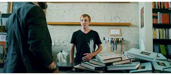 5つのカートに山盛りに本を入れたオハラは、店員に、「これで全部だろうな?」と訊く(1枚目の写真)。店員は、ヘンリーが見ていた本を指差す。一方、パトリシアは、西英辞書を持ち出し、ヘンリーが最後の頃に話したスペイン語の単語の意味を調べている。そして、それを付箋紙に書いて、並べてみる。「you – found – my - father」。それを見て、パトリシアは(自分も知らないので)驚愕する。ここで、場面は本屋に戻り、オハラは、ヘンリーの前まで行くと、「その本、渡してくれるか?」と訊く。ヘンリーは、「もう呼んだよ」と言って渡す(2枚目の写真)。オハラは、「君がこれを本当に全部読んだのか?」と、冗談だと思って訊く。「見たり読んだりしたものは、頭に記録されるんだ。常に何でも覚えちゃう」。オハラが全く信じないと、ヘンリーは、本の一部を暗唱する。「異性愛か同性愛のどちらかを受け入れ可能な規範として選択することで、両親は子に特定の性的指向を助長することができるものと肯定的に仮定する。2ページ。第2段落」。それを聞いたオハラは、背を向けて本を開き、内容を確かめる。今のが、本の最初の方だったので、オハラが 「その他の不調の中でも、被験者は…」と読み始めると、ヘンリーがすぐに 「原因不明の眩暈恐怖症の強烈な感覚に悩まされている。目まいに対する恐怖は、しばしば悪心や嘔吐を引き起こす。142ページ」と続ける。オハラが 「第4段落」と言うと、ヘンリーは 「第3段落。142ページの最初の段楽は、前のページの続きだから」と言い、それに気付かなかったオハラがそれを確かめると、確かにその通り。これで、ヘンリーには、写真記憶のあることが納得できたので、そんなすごい子と会ったことがないオハラは、握手の手を差し出し、「スラヴキン・オハラ」と名乗る。ヘンリーも、「ヘンリー・ジェームズ・ハーマン」と言って、握手する(3枚目の写真、矢印は本が山積みになったカート)。