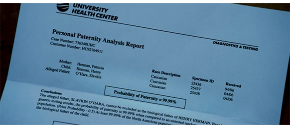 その日の夜は嵐。学長室に呼ばれたオハラに、学長は、「本校の輝かしい歴史で74人のノーベル賞受賞者がいる」〔この映画の舞台がどこかは不明だが(ロケはカナダ)、現時点でノーベル賞受賞者(教員・研究員、卒業生を含む)が80人を超えているアメリカの大学は6校。ハーバード、バークレー、シカゴ、コロンビア、マサチューセッツ、スタンフォード〕。しかし、終身在職権を持つ教員がオプラ〔TVの有名なトーク番組〕に出演した例はない。まあ、あれも宣伝にはなるが。君が次に、新しい本でオプラに出演する時には、きっとうまくいくだろう」。「次の本などないよ、チャールズ」。「君の仕事に、資金をつぎ込んだのに?」。「ヘンリーは、私の仕事じゃない」。「違う? じゃあ、何なんだ? 彼は、君が、ここにいて欲しがったから、ここにいるんだ」(1枚目の写真)「彼は、君のために、大金を払ってここにいる」。「そうですね、チャールズ。ヘンリーは、私のために ここにいる」。「分ってくれればいい、スラヴキン。君は、出版するか、ここから消えるかだ」。しかし、オハラは、学長が最初に言ったように、終身在職権を持っているので、「クビにはできませんよ」と言って、意気揚々と 部屋から出て行く。オハラが研究室に戻ると、真っ暗な室内にヘンリーが デスクに座って待っていた。ヘンリーは、背を向けたまま、話し始める。「神童から大人への移行は非常に難しい。社会に適応した大人になることに成功する神童は100人に1人」。それだけ言うと、イスを180度回転させ、オハラの顔を見つめる。「あなたは 10004枚の付箋紙で研究したんだ。何らかの結論に達したに違いない。僕は、100人の仲の1人になれる?」。オハラは、ヘンリーは、1世紀に1人あるかないかの桁外れの存在だと言う。「桁外れなんか嫌だ。あなたの次の本の被験者になんかなりたくない!」。オハラは、「君の本は書かない」と断言し、「付箋紙のことは忘れて欲しい」と頼む。しかし、写真記憶のヘンリーは、「忘れられない」と見放すように言う(2枚目写真)。そして、ヘンリー宛に届いたDNA鑑定の手紙を残していく。そこには、「母親: パトリシア・ハーマン、子供: ヘンリー・ハーマン、推定される父親: スラヴキア・オハラ、父親としての可能性=99.99%」と記載されていた(3枚目の写真)。これで、ヘンリーが、オハラの精子で生まれた試験管ベイビーであることが確定した。
