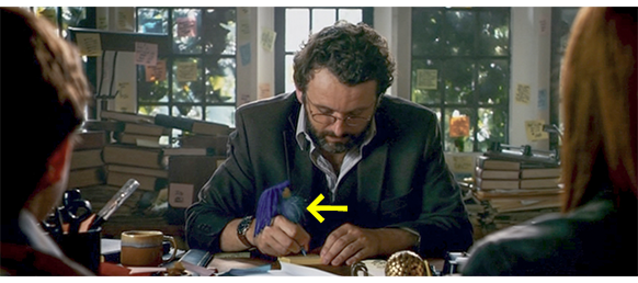 約1週間後、オードリーとヘンリーが、オハラの研究室で、彼の前に糾弾するように座っている。オードリーは 「過去に戻ることができるとしたら、それでもあの本出版する?」と訊く。最初、オハラは、「あの本のお陰で 意図しなかった素晴らしいことがたくさん起きただろ」と 弊害ばかりじゃなかったことを訴える。そんな詭弁には納得できないオードリーは 「質問に答えて」と要求する。オハラは 「そうだ。私は、絶対確実に〔most certainly〕、しなかった〔would not〕」と、強い意志を示す否定形を使う(1枚目の写真)。「だが、過去は変えられん」。そこに、ヘンリーが口を出す。「でも、未来は変えられる」。オードリーは、ヘンリーに 「その通り」と言うと、オハラに 「今日は私の誕生日。大人になった今、私は、世界をより良い場所にするために援助する道徳的責任があると思うの」と言うと、法律用語的な口調で 「私、オードリー・オハラは、18歳の誕生日に、信託基金の20%を以下の団体に寄付します」と述べる。それを聞いたヘンリーが軽く咳払いをすると、「分かった、25%にする」と訂正し、ヘンリーが強く咳払いをすると、「33と1/3%〔3分の1〕、これが最後よ」と ヘンリーに言う。そして、寄付先を書き留めるよう、オハラに要求する。オハラがペンがないと言うと、ヘンリーがゲーム機で勝ち取った人形付きのボールベンを渡す(2枚目の写真、矢印)。オードリーがあげた団体は、N.O.W.〔全米女性同盟(女性の権利やLGBTの権利)〕、E.D.F.〔環境防衛基金(環境保護)〕、National NGLTF Task Force〔全米ゲイ・レズビアン・タスクフォース(LGBTの社会的地位向上)〕の3つ。