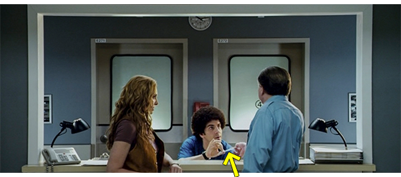 そして、話は10年と9ヶ月以上前に戻り、スタンとパトリシアは、精子バンクに行き、匿名のドナーの精子を購入し、それをパトリシアに受胎させる交渉をする。費用はすべてスタン持ち。受付に座っているのは、10年と9ヶ月後に、カトリックの中学校で、スタンと争うことになる黒人を自称する変な白人。スタンは小切手にサインする。日付は1997年9月4日。金額は14999.99ドル〔2020年の約24000ドル≒260万円〕。スタンは小切手を受付に渡すが、なかなか小切手から手を離さない(1枚目の写真、矢印)。「巧くいかなかったら、返金されるよな?」と念を押す。受付の男は、カウンターの下に書いてある 「NO REFUNDS / NO EXCEPTIONS(返金なし / 例外のなし)」の表示を指差し、小切手を奪い取る。パトリシアは、「ありがとう」と スタンに微笑みかける。受付の男は、延々と並ぶ引き出しの任意の場所まで梯子をずらして行くと(横20×縦8=160の引き出しのグループが、10以上見える)、梯子を一番上まで登り、そこから冷凍した精子を取り出す。ここで、現在に戻り、「2万ドル払った価値はあった」。そこに、パトリシアがバースデーケーキを持って、こっそり現れ、2人の話を盗み聞きしている〔パトリシアはほとんどスペイン語が分からない〕。「1万4999ドル99セントだって言ったよ」。「事を円滑に進めるために、知りたいことにお金が入り用になることがあるんだ」。そして、「賄賂」と表示され、“日付 2008年10月18日、金額 5000ドル1セント” の小切手が映る〔5000ドル1セントなのは、1997年に支払った14999.99ドルと合わせてぴったり2万ドルにするため〕。この時は、カトリックの中学校の授業参観でスタンがバカの顔を殴った後なので、受付の男の右目が黒く腫れている。スタンは暴力をふるったことに対し、「起訴しないでくれて感謝する。息子さんの前で、恥をかかせる気はなかった」と、養子ではなく息子と言って、相手の主張を認めたのかと思いきや、「あんたが本当に黒人だったら、(目の黒痣は)そんなに目立たなかったろうに」と、相手が白人であると釘を刺す。男は 「俺はホントに黒人だ」と主張した上で、「不渡りにならんだろうな?」と疑う。「保証する」。「白い悪魔の二枚舌は嘘だらけだ」。それを聞いたスタンが帰ろうとすると、相手は、小切手が換金できた後で、必要な情報は渡すと言って、スタンの小切手を受け取る(2枚目の写真、矢印)。男は、さらに、教えたのが俺だと誰にも言うなと念を押す〔スタンは、その約束を破ってヘンリーに話している〕。ここで、映画は現在に戻り、ヘンリーは、「僕の父親が分かったの?」と訊く。その言葉を木の陰からパトリシアが聞いている。「まあ… そうだな… パパまでは分からんかった。そこまでの金はなかった。だが、君の姉さんが誰かは分かった。異母姉だ」。「僕の異母姉が分かったの?」。「そうさ、彼女は12歳だ。名前は…」。