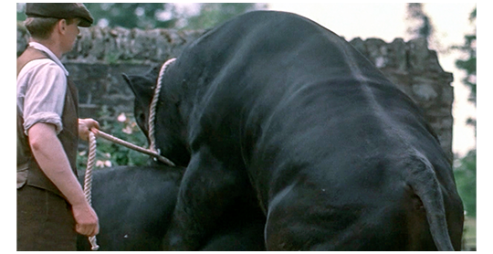 仲良くなったドナルトは、フレイザーを農家の自宅に連れて行き、囲いの板の剥がれた部分から、雄牛と牝牛の交尾をフレイザーに見せる(1・2枚目の写真)。その時、2人の間に割り込んだキャシーは、フイレザーに色目を使う(3枚目の写真)。原作には、全くないシーン。